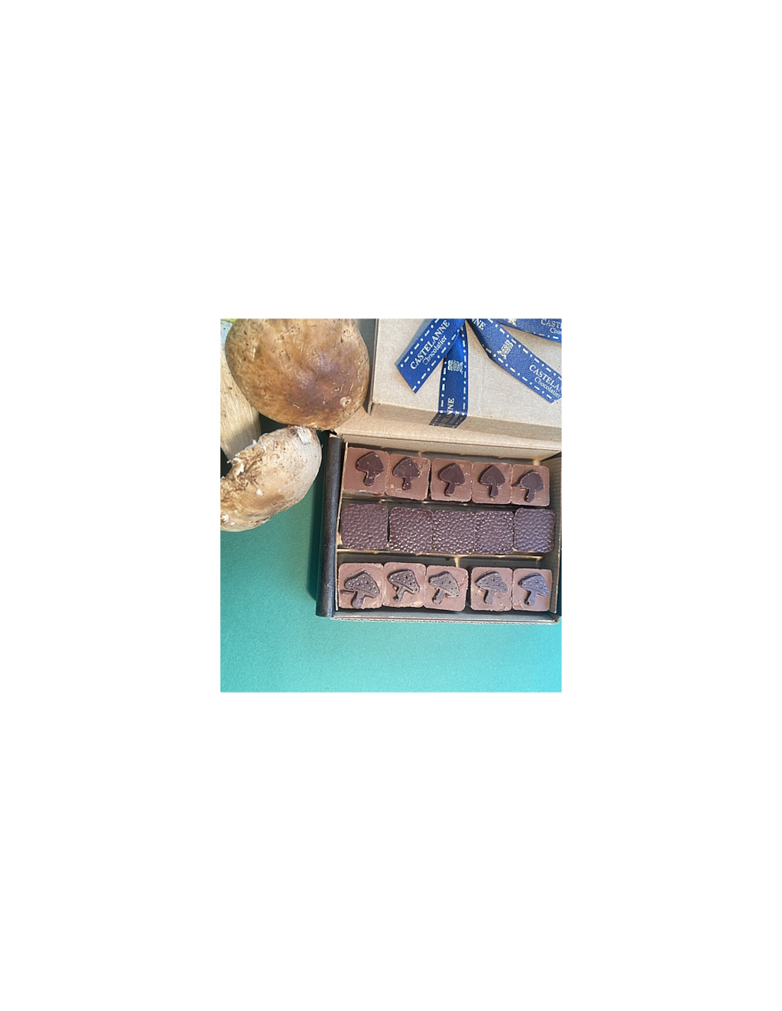 Ganache noire dans un chemise de lait pour le cèpe et la morille et la truffe dans son apparât de noir